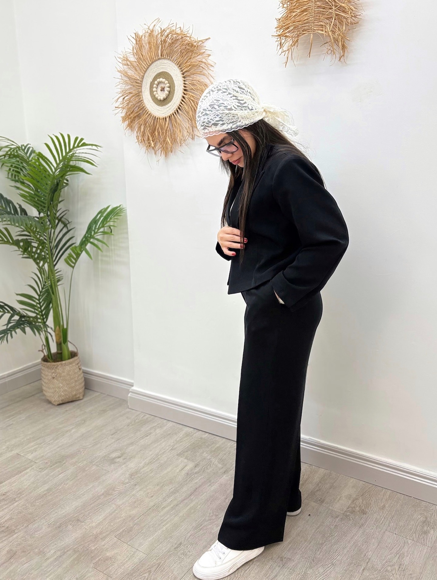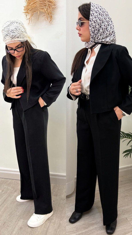 ست کراپ کت و شلوار زنانه بلک کد کرپ گرم بالا کپی